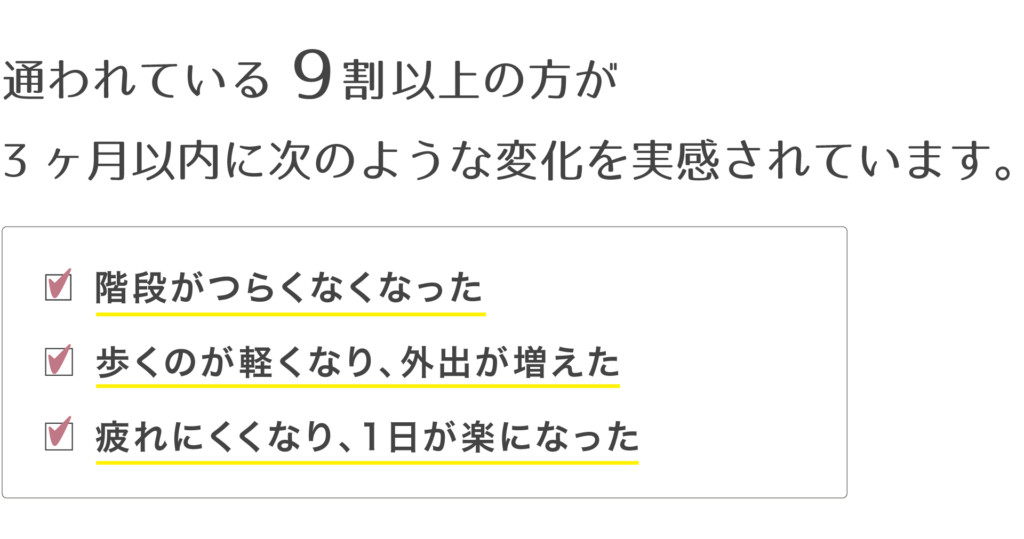 階段を楽にのぼれる、買い物に行ける、姿勢よく歩ける――